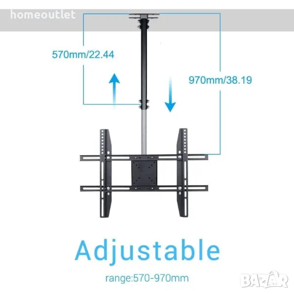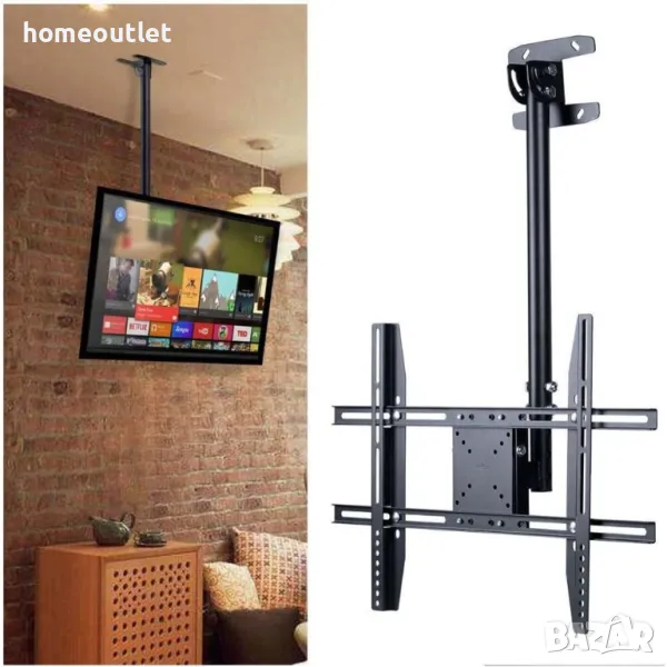 Стойката за телевизор с таванен монтаж е подходяща за повечето 23” LCD LED плазмени плоски OLED екрани с тегло до 30 kg/66 lbs - LG, Samsung, Sony, Hisense, Panasonic и др.
