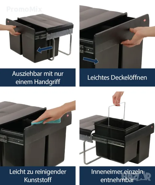 Wesco 280150 е кош за разделно събиране на отпадъци, проектиран за кухненски шкаф.