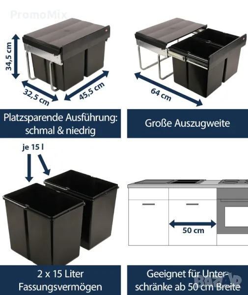 - Капацитет: 2 x 15 литра (30 литра)