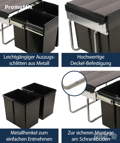 Кош за отпадъци Wesco 280150 30л За вграждане кош за боклук разделно събиране 2 отделения