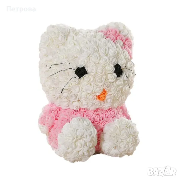 Котка от рози-40 см./Hello Kitty от рози в луксозна кутия с панделка → Обява 49009181