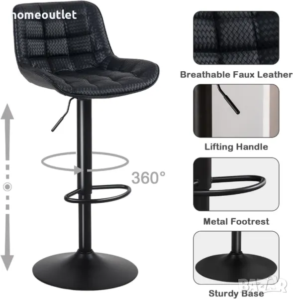 Възглавницата на бар стола, подплатена с еластична мемори пяна с висока плътност, осигурява меко докосване, високата облегалка Ви дава пълна опора за гърба, а поставката за крака Ви позволява да отпуснете краката си.