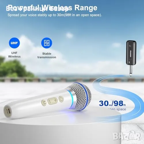 Нов Караоке микрофон с презареждащ се приемник – Чист звук, 30м обхват