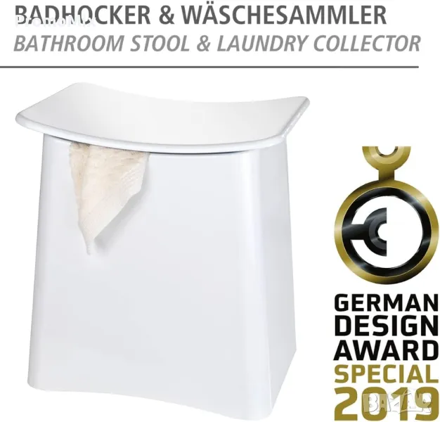 Wenko 22949100 Wing Collector е комбинация от кош за събиране на мръсни дрехи и табуретка.