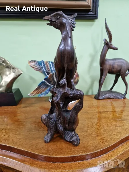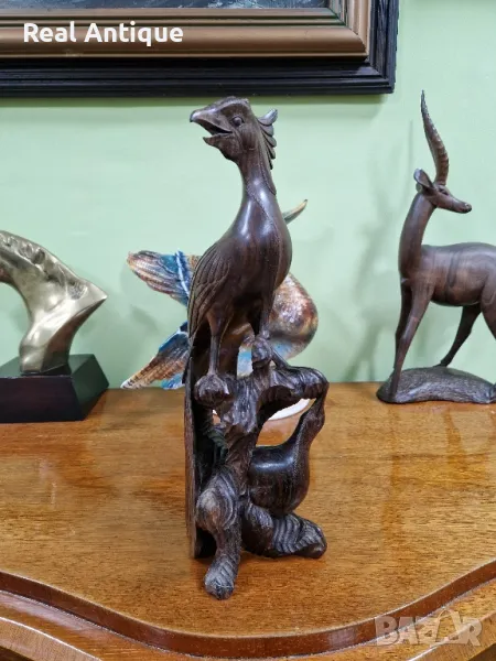 Продавам прекрасна голяма антикварна колекционерска дървена фигура статуетка композиция в много добро състояние без забележки. Тежка здрава масивна. Височина 38 см. Чудесно допълнение към интериора на Вашия дом офис вила ресторант хотел . Подходяща и за подарък. Работя с всички куриери . Отговарям бързо.