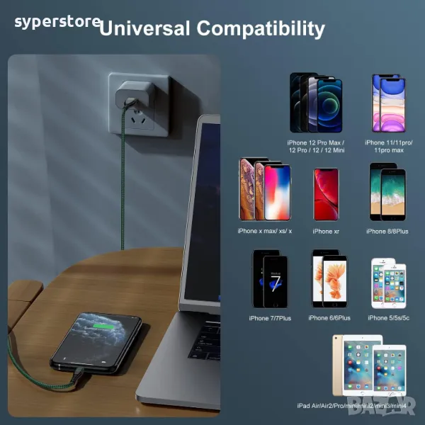 Предназначение: връзка телефон - компютъ iPhone 5, iPhone 6 ,iPod Nano 7 , iPad 4 to USB