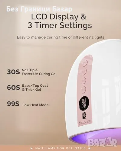 Три таймера + LCD дисплей – Настройки 30s/60s/99s, нискотемпературен режим за нежно втвърдяване.