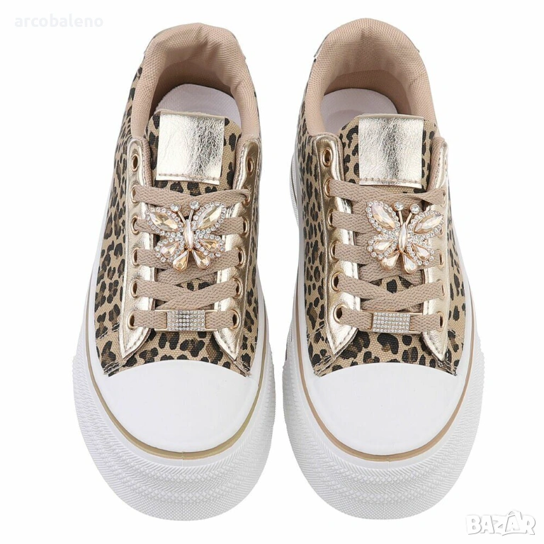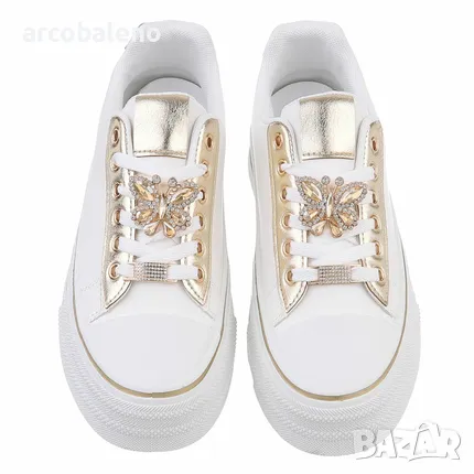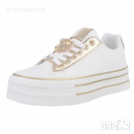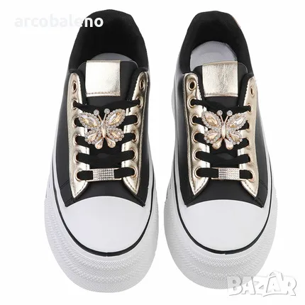 Тези маратонки на платформа предлагат максимален комфорт и модерен дизайн. Многослойната платформа подметка осигурява удобно омекотяване при всяка стъпка и дава допълнителна опора. Декоративната украса на горната част добавя бляскав акцент и прави обувките стилен спътник както за ежедневно носене, така и за специални поводи. Връзките позволяват индивидуално регулиране за оптимален комфорт. Със своята издръжлива конструкция и внимателно обмислени детайли, тези обувки съчетават функционалност с атрактивно съотношение цена-качество.