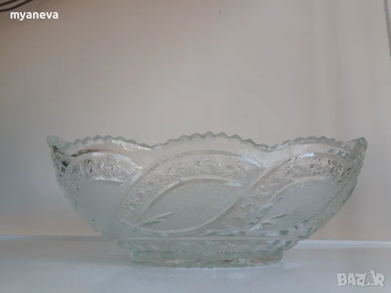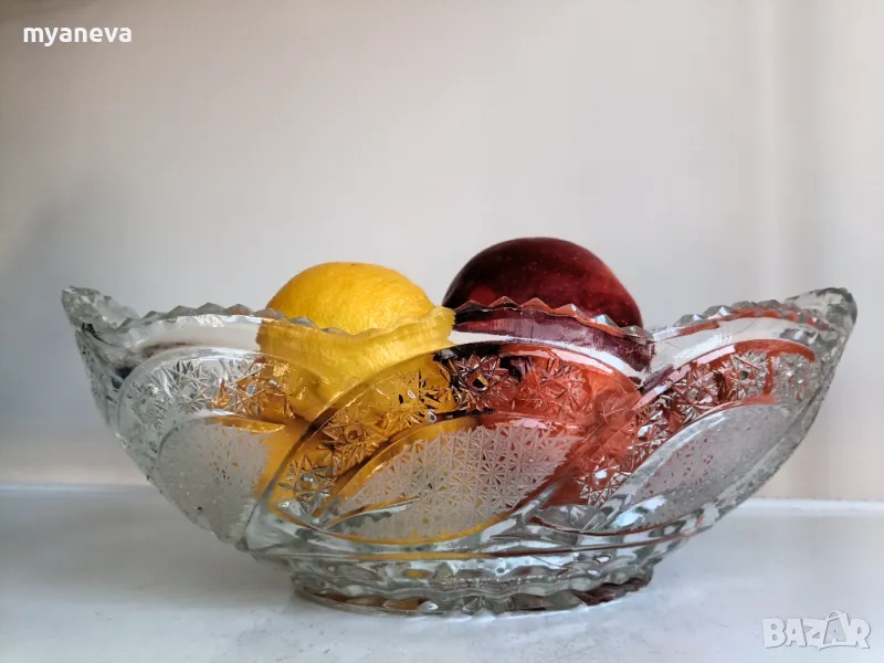 Кристална , тежка , масивна фруктиера . Размер 33 см. Цена 45 лв.