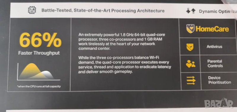 1,8 GHz 64-битов четириядрен процесор, 3 копроцесора и 1 GB RAM - НАЙ-МОЩНИЯТ РУТЕР НА TP-LINK ЗА ДОМАШНА УПОТРЕБА.