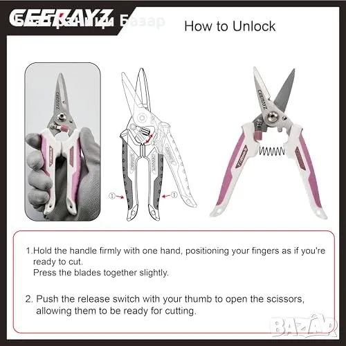 Автоматичен пружинен механизъм – Самоотварящи се остриета за намаляване на умората и по-ефективна работа.