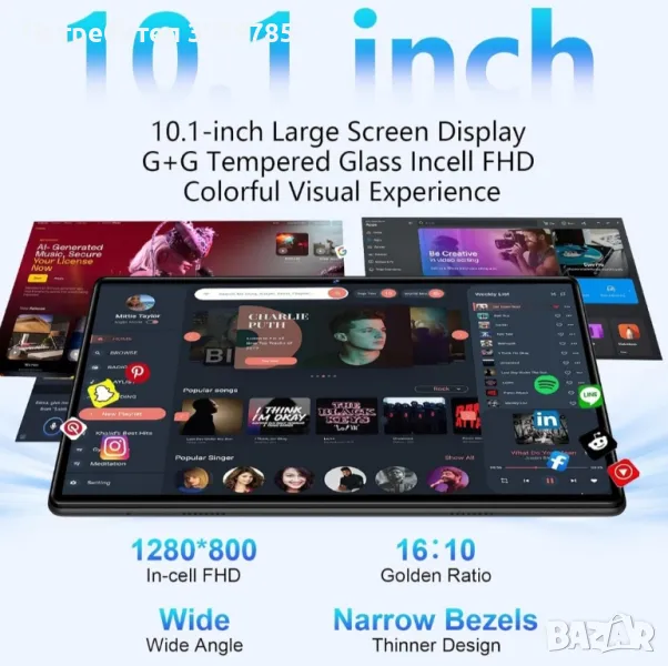 10,1-ИНЧОВ INCELL FHD - Насладете се на зашеметяващи визуализации на 10,1-инчов екран от закалено стъкло с разделителна способност 1280*800, предоставящ ясни и живи визуализации, идеални за гледане на видеоклипове и четене на електронни книги. Предлага издръжливост и яснота, което го прави устойчив на надраскване и леки удари