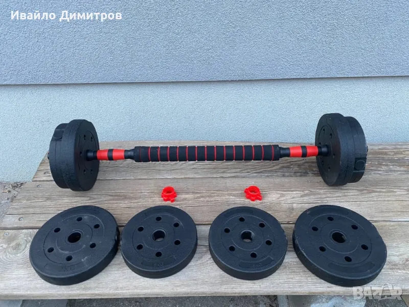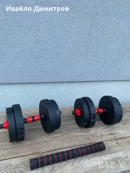 Всички компоненти са включени в цената на комплекта. Гуменото покритие на ръкохватките на дъмбелите осигурява комфорт и предпазва от натъртвания и изпотяване по време на тренировка. Включените лостове позволяват лесна трансформация от дъмбели в щанга, което увеличава гъвкавостта и многообразието на упражненията, които можете да изпълнявате.