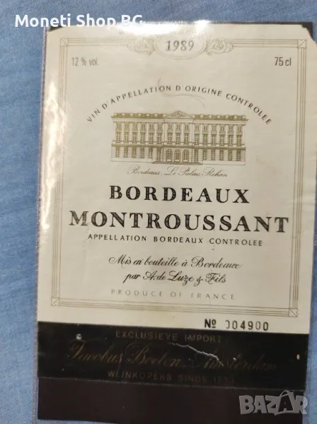 Колекцията се предлага на малки лотове. Качество и състояние видно от снимките. Събирана е повече от 20 години. Подходяща е както за начинаещи така и за професионални колекционери за да попълнят липсващите марки и години. Подходяща е за пана за къщи, механи и винени заводи. Подходяща са за дизайнерски студиа и агенции, за вдъхновявания на дизайнери като модели и сюджети както и да бъдат използвани за изследване на тененциите на етикети през различните години на винопроизводителите. Молим измамници, които възнамеряват да купят стари бутилки колекционерски вина, които не са били съхранявани правилно и бутилките са с изгнили, мухлясали или паднали етикети да не се свързват с нас. Ние няма да им съдействаме в престъпните намерения. Правим това уточнение, защото вече се свързаха такива лица с нас с идеята да купят етикети от колекцията и да ги залепят на такива етикети вино, които да продадат за оригинали на богати колекционери. Да, ние знаем, че етикета продава! Ние предираме за етично поведение и отношение в колекционерските среди. Цената от 3 лева на брой не се коментира дори и при покупка на 500 - 700 - 1000 екземпляра. Идеята е тези етикети на ниска цена да достигнат до повече колекционери и да донесат повече радост на повече хора.