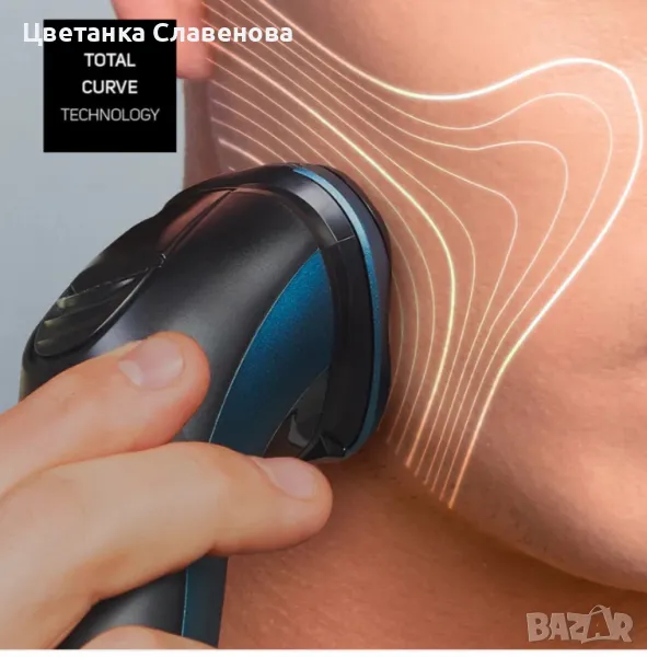 самобръсначка с технология Total Curve се адаптира към контурите на лицето и шията с плаващи глави, осигурявайки равномерно бръснене. Неговите остриета с двоен пръстен осигуряват ефективно рязане, докато неговата защита IPX7 позволява сухо или мокро използване. С изскачащ тример, 45-минутен живот на батерията, USB зареждане и ергономичен дизайн, той осигурява комфорт и прецизност. Включва четка за почистване, защитна капачка и USB кабел.