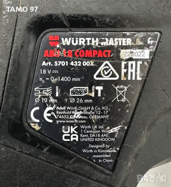 Марка и модел: Wurth ABH 18 Compact Напрежение на мотора: 18V