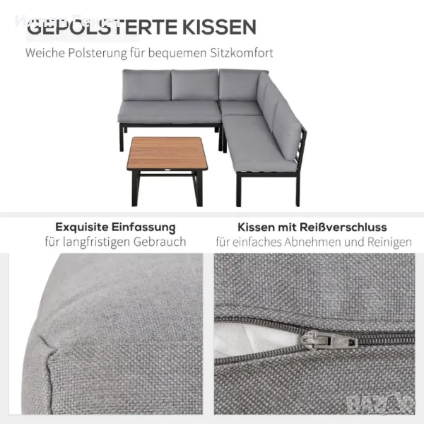 ПРАКТИЧЕН ДИЗАЙН: Полиестерните калъфи са водо- и UV-отблъскващи и следователно много издръжливи. Калъфките се свалят и перат.
