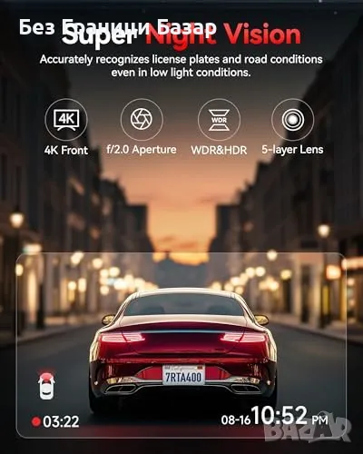 Нова Автомобилна камера 4K UHD с GPS, паркинг режим и тъчскрийн за кола
