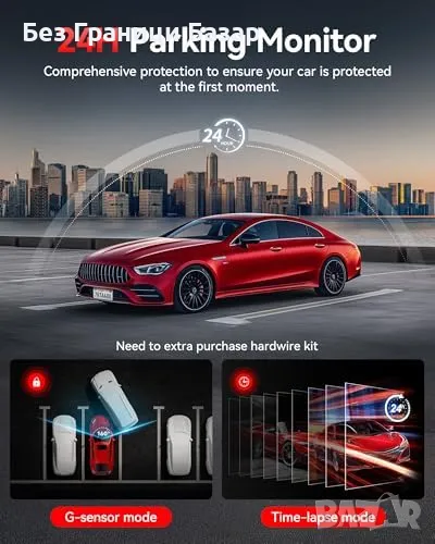 24H паркинг режим – Засича удари и записва при нужда (изисква допълнителен хардуерен комплект).