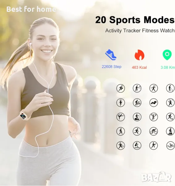 【20 спортни режима и наблюдение на здравето】 Дамският интелигентен часовник има 20 спортни режима, изберете съответния спортен режим на смарт часовника, записвайте данните за всяко упражнение, помага ви да зададете тренировъчния план. Интелигентният часовник следи сърдечния ритъм, кръвното налягане и кислорода в кръвта, следи физическата активност и съня, за да защити вашето здраве 24 часа в денонощието и може да отговори на вашите ежедневни водоустойчиви нужди.