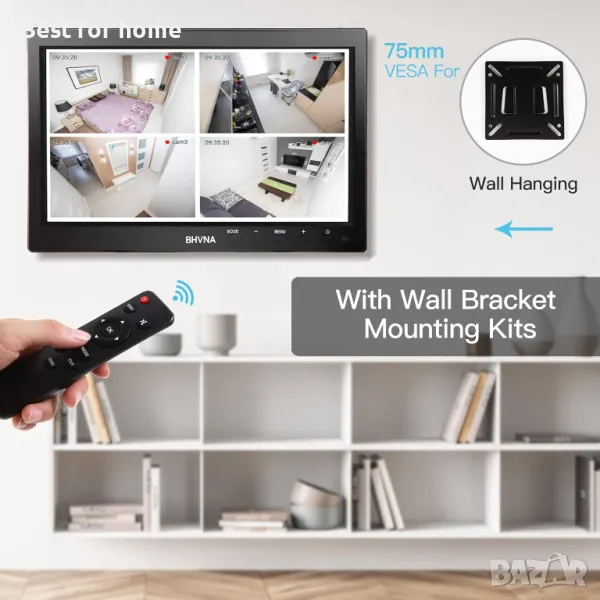 【Отлична производителност】10,1-инчовият преносим монитор има разделителна способност 1024*600, ясно качество на изображението и ярки цветове, идеален за използване като монитор за видеонаблюдение или минителевизионен екран. Освен това има висока чувствителност и способност против смущения. Малък като размер, не заема място.