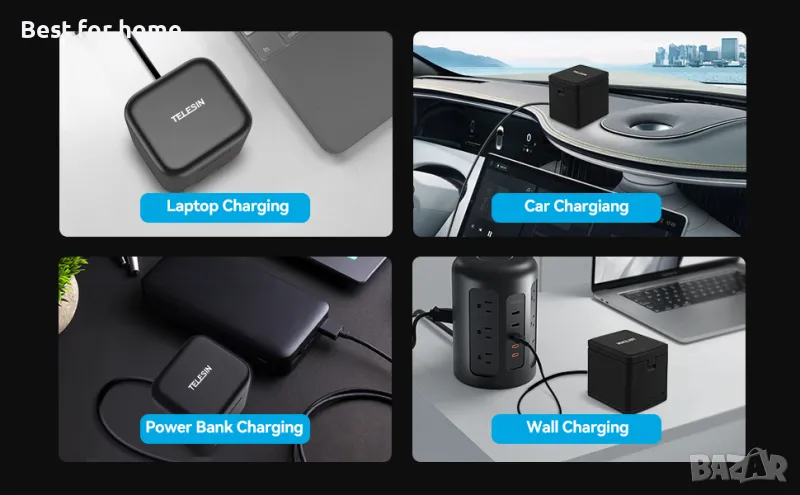 ◀ Зарядното устройство тип затворена кутия е безопасно и удобно, има порт тип C за зареждане на батерии с оригиналния кабел тип C (кабелът тип C не е включен в пакета).
