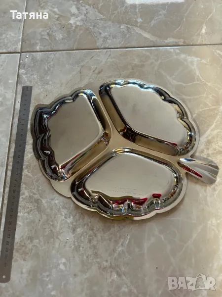 Чиния, плато «лист» за ядки от неръждаема стомана, снимка 1 - Прибори за хранене, готвене и сервиране - 49020138 Чиния, плато «лист» за ядки от неръждаема стомана, снимка 2 - Прибори за хранене, готвене и сервиране - 49020138 1/2