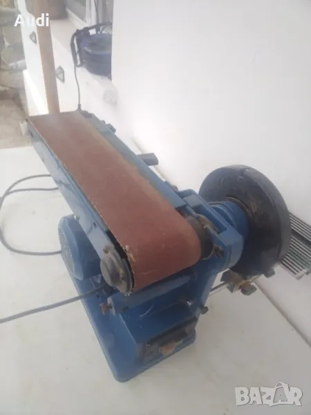 Предназначен за сухо шлайфане на дърво, пластмаса, шпакловка и боядисани повърхности. мощност от 350 W при скорост на празен ход от 1450 rpm (оборота). Машината е комбинирана и се отличава със своята здрава конструкция и комбинацията от шлифовъчен диск с диаметър 150 mm и размер на шлифовъчната лента 100 mm x 914 mm.