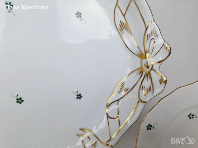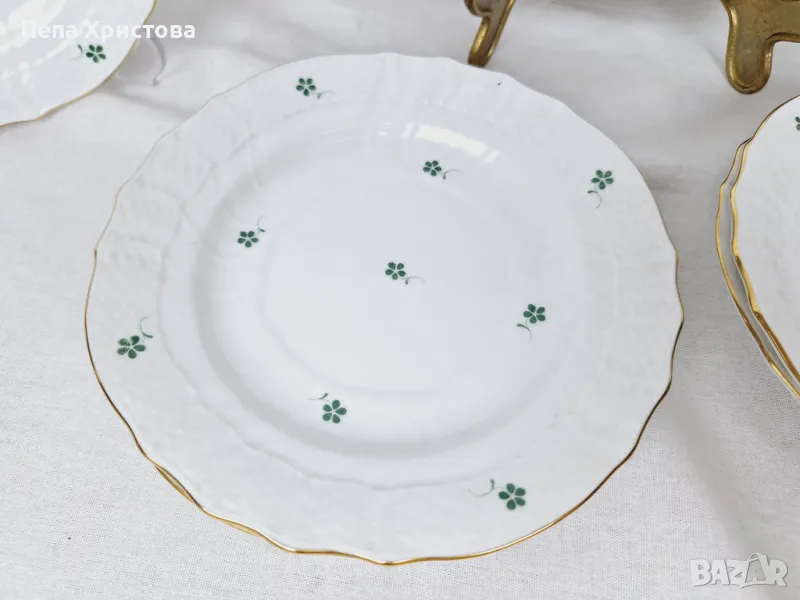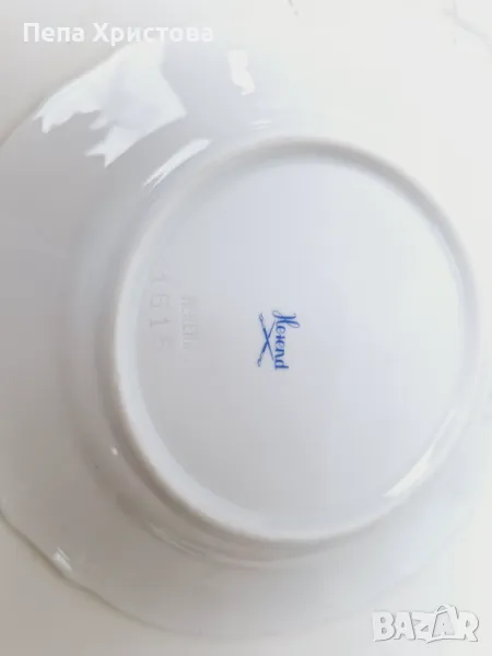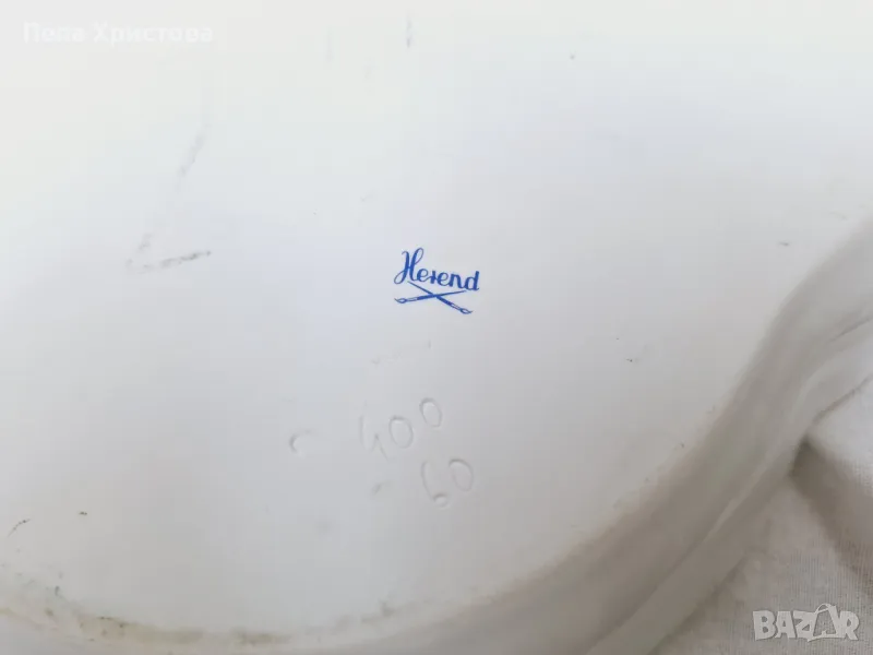 Десертен сервиз от унгарски порцелан Herend с фин декор. Маркировката е така наречената "студентска" маркировка.