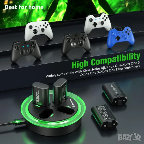 Този пакет акумулаторни батерии и станция за зареждане специално за контролери на xbox са надеждни и с по-висок капацитет от наличните в търговската мрежа артикули при 2600mAh, осигуряващи четири порта за зареждане за бързо зареждане и непрекъснато страхотно игрово изживяване.