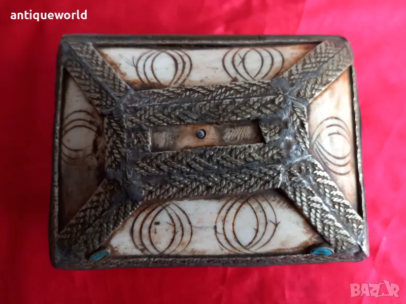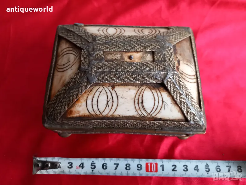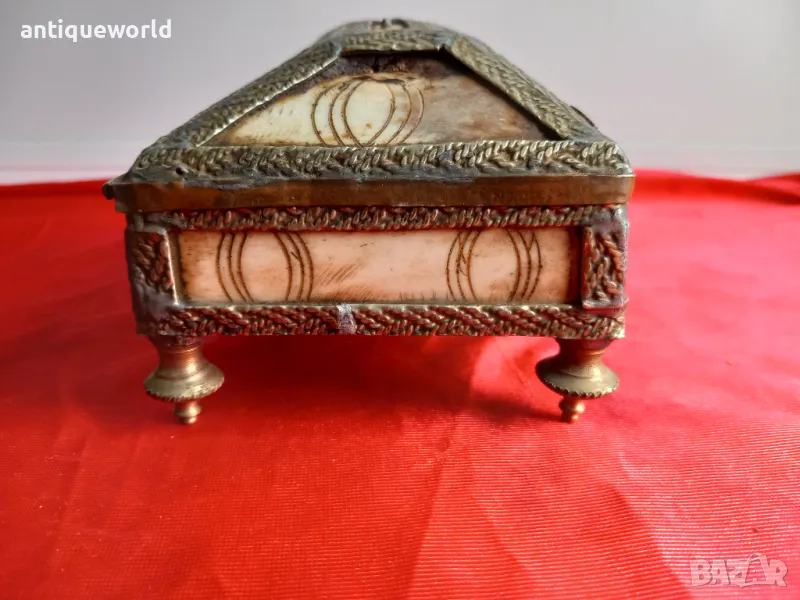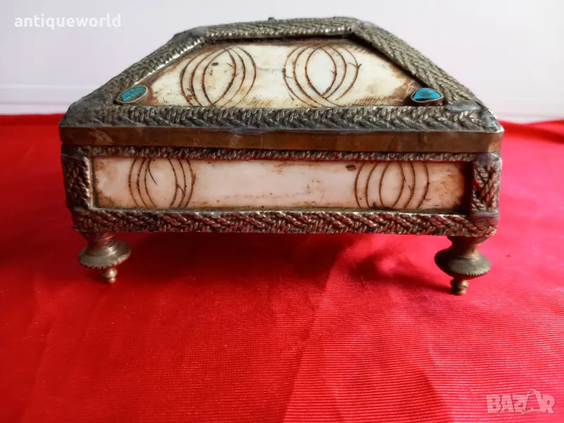 19 Век Красива Старинна Кутия за Бижута Камилска Кост и Месинг.Ръчна Изработка.
