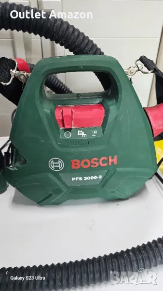 Пистолет за боядисване BOSCH PFS 3000-2 има мощност 650 W, дебит 300 мл/мин и капацитет на резервоара 1000 мл. Поддържа ALLPaint технология за лесно пулверизиране на всички видове боя. Има възможност за избор дали да пулверизира боя за стена, обикновени или лазурни лакове. Разполага с практична SDS система за бързо допълване с боя и лесно почистване. Притежава ConstantFeed резервоар за непроменящо се захранване с боя и при работа над глава или близо до пода. Има компактен корпус с колан за през рамо за гъвкава и удобна работа. Моторът е с 2-степенна настройка за бои за дърво и стена.