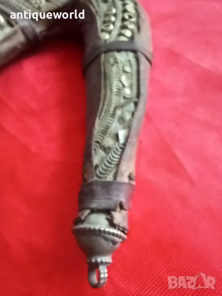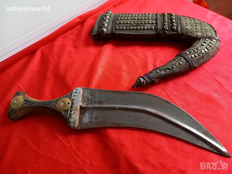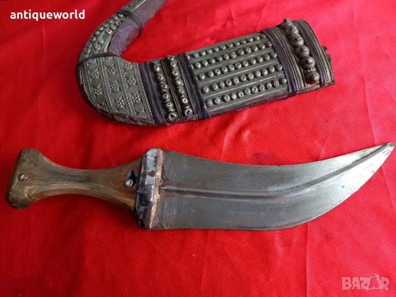 Ханджар , Кама, Острие , Дръжка от Кост на Носорог, Дървена Кания обвита с Кожа и Богата Сребърна Гранулирана Украса Сребро (Сачан).