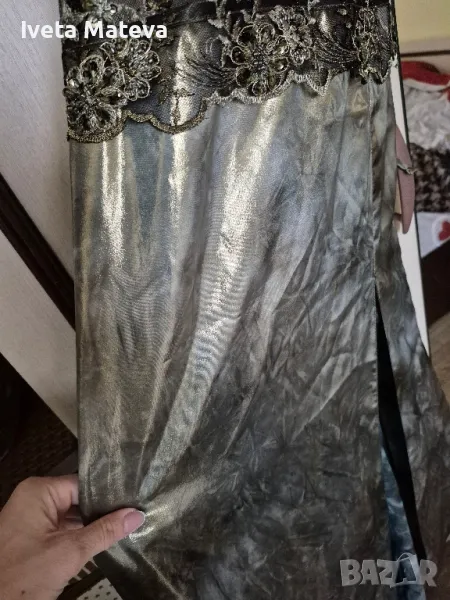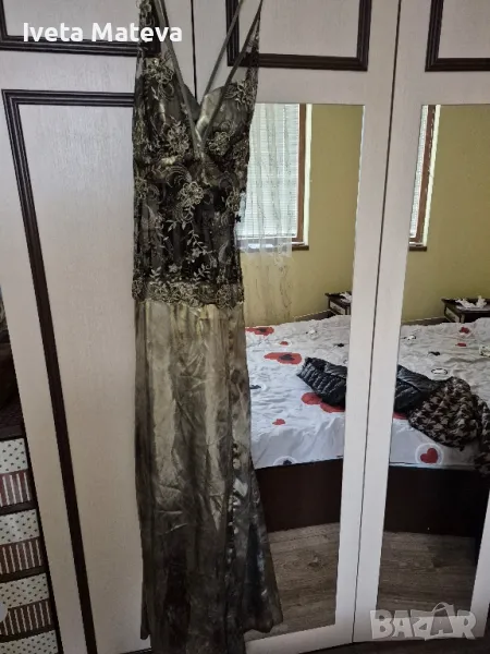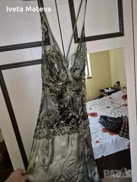 Бална рокля с гол гръб и голяма цепка.Цветът е много хубав -Хамелеон .Обличана е веднъж .