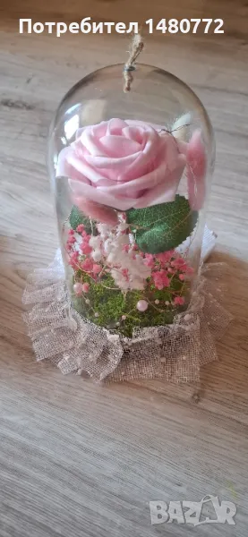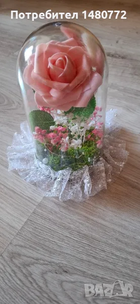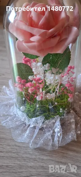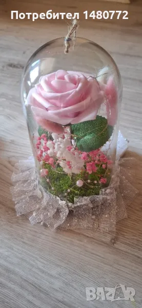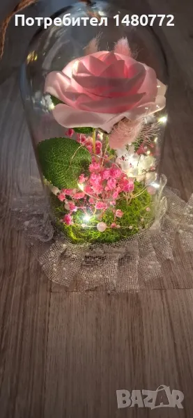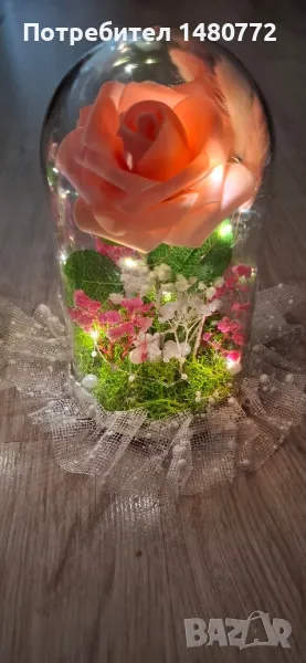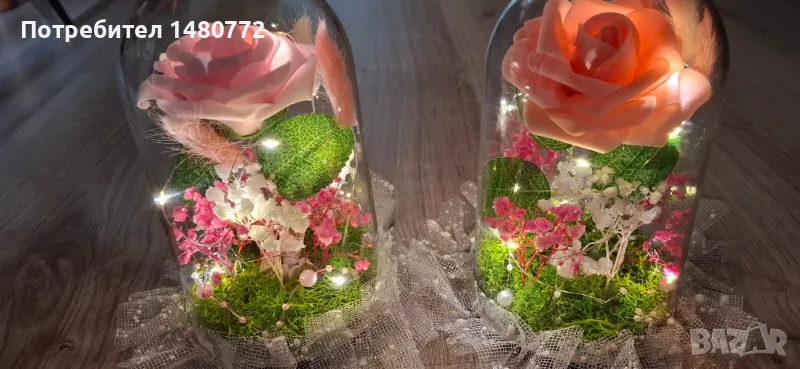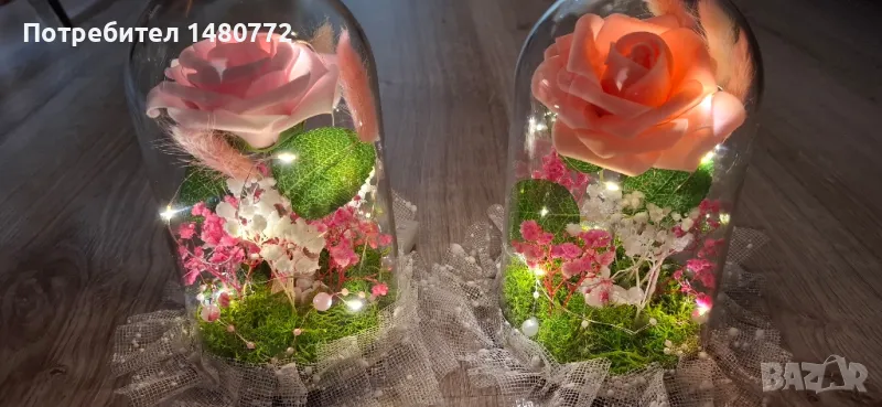 Светещи куполи с изкуствена роза, декорация и скандинавски мъх → Обява 49022265