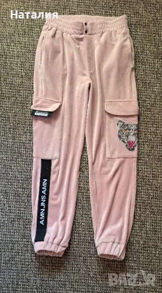Дамски велурен комплект. Размер S. Цвят пепел от рози, с пайети.