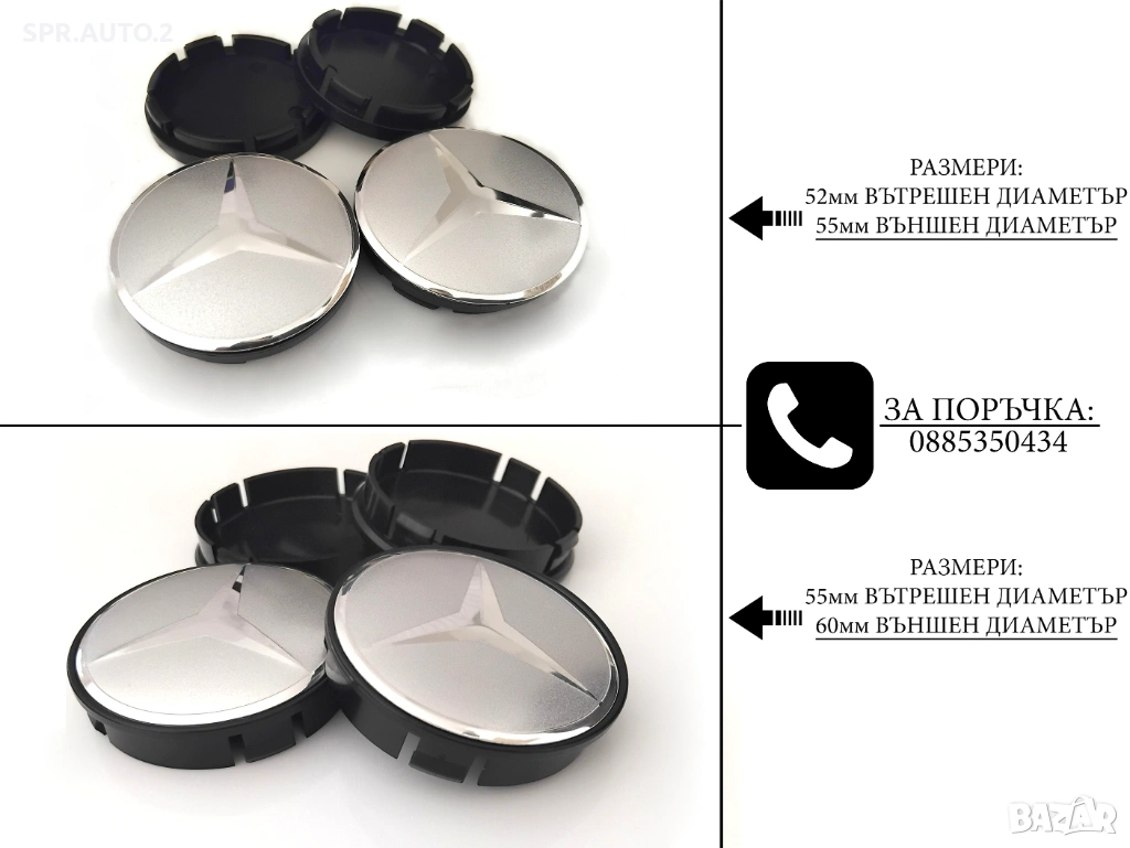 Капачки за джанти за Mercedes Мерцедес / размери от 52мм 55мм / нови сиви декоративни тапи
