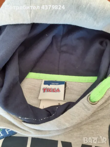 Нов детски немски суичър в сив цвят с качулка., р.134/140 см, 94% памук, 6 % полиестер.
