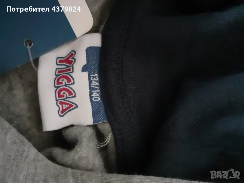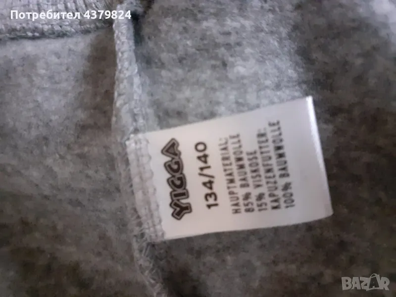Нов детски немски суичър в сив цвят с качулка., р.134/140 см, 85% памук, 15 % вискоза.