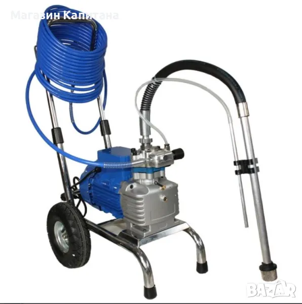 Bisonte PAZ-6860e е машина за безвъздушно боядисване, която е подходяща за нанасяне на грунд, бои на водна основа, епоксиди, полиуретан и др. Машината е изработена от висококачественни материали и има дълъг живот на експлоатация. Тя осигурява високо качество и ефективност на покриване. Стандартно пристига окомплектована с дюза, маркуч, пистолет, транспортна количка. Механичен контрол на налягането.