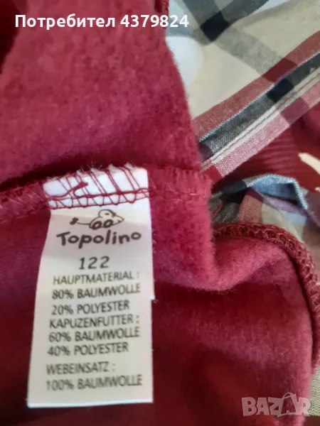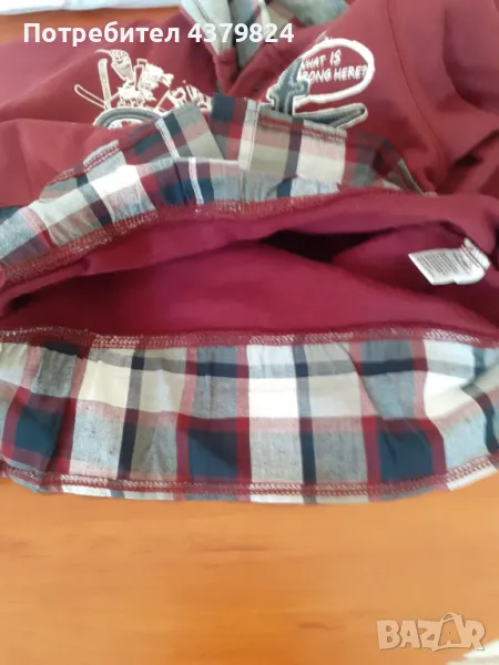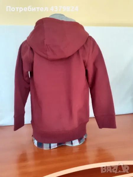 Нов детски немски суичър с имитация на риза в бордо цвят с качулка за момче, р.122см., 80% памук, 20% полиестер.