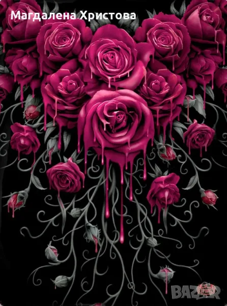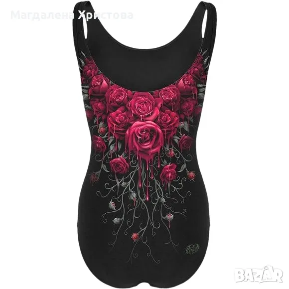 Дамски готически цял бански с дизайн Blood Rose - красива гирлянда от рози и капеща кръв!