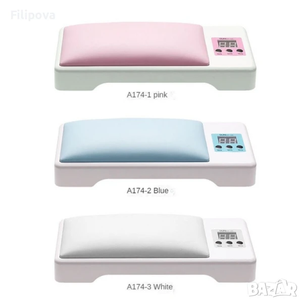 Бързо съхнеща: лампата за нокти използва UV и LED двойни източници на светлина, вградени 24 LED перли, максимална мощност от 72 W, 180° всепосочно излъчване, осигурява равномерна и стабилна светлина и може бързо да втвърдява различни лакове за нокти. Идеален за маникюристи и любители на маникюра.Функция за синхронизиране: 3 опции за синхронизиране: 30s, 60s, 90s, времето се показва на LCD екрана и времето за ноктопластика може да се контролира прецизно. Времето също може да се регулира свободно според действителната ситуация, което е удобно за използване.Размери: 31 x 11 x 5 cm