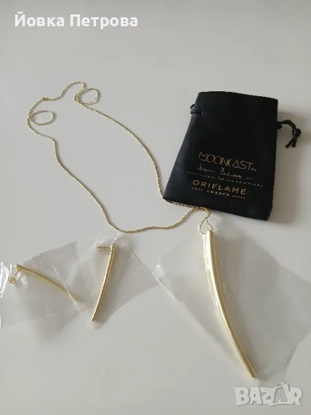 Продавам бижута комплект обици, с колие и висулка, златисти, изчистени, стилни., снимка 1 - Бижутерийни комплекти - 49025548 Продавам бижута комплект обици, с колие и висулка, златисти, изчистени, стилни., снимка 2 - Бижутерийни комплекти - 49025548 1/2
