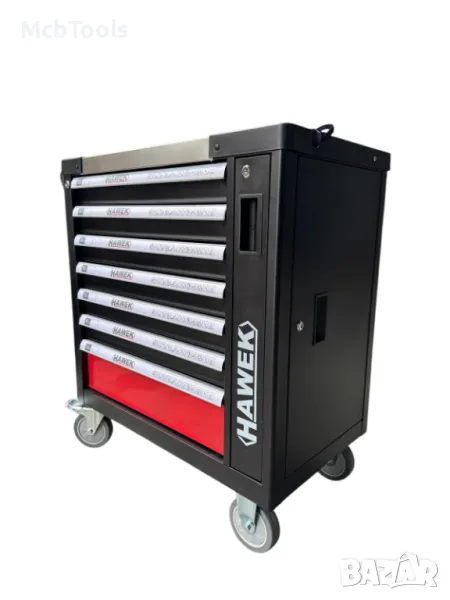 Празен шкаф за инструменти със 7 чекмеджета, метален плот и отделение за закачане на инструменти HAWEK