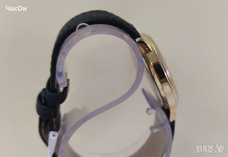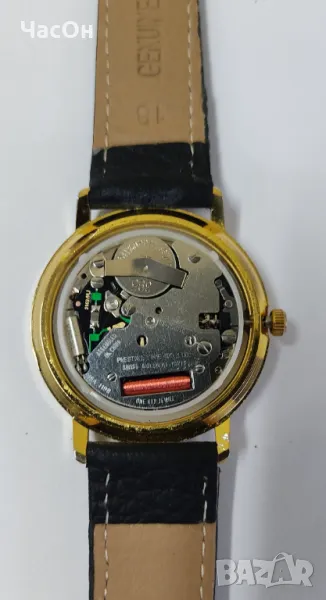 и качествен механизъм. Няма драскотини по касата и стъклото. Светло златисто покритие. Кварцов механизъм с швейцарски части на фирмата PRESTIGE TIME CO. LTD. Нова швейцарска батерия. Нова кожена каишка.