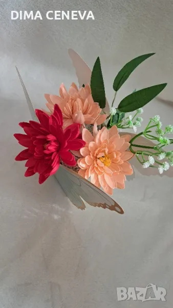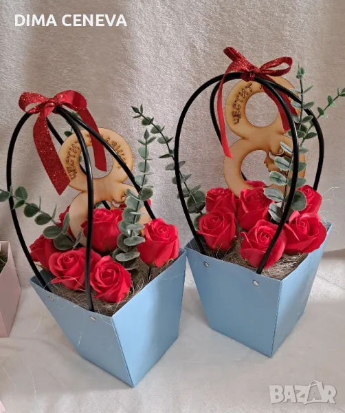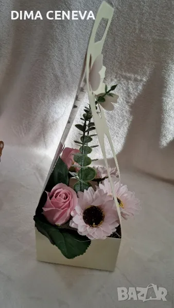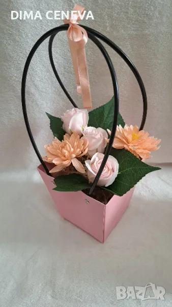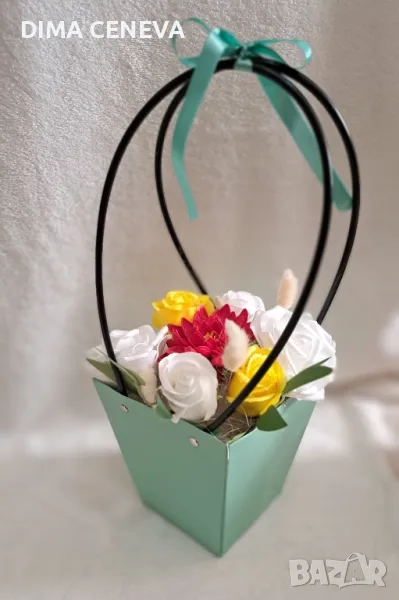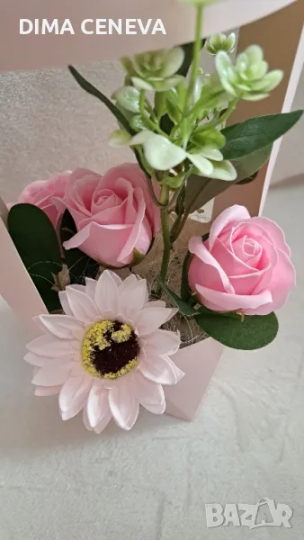 Ароматни букети от пластичен сапун. Подходящ подарък за всеки повод и за всяка дама. Разнообразие от опаковки, цветя,аранжировки и цветове. Работя и по поръчка, с цвят и цвете по избор. Рози, гербери, хризантеми, орхидеи.....Цените са според вида и броя цветя .Очаквам Ви. Качество, красота, креативни идеи и бърза доставка.