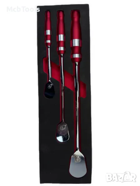 Комплект удължени, усилени тресчотки с плоска глава и функция за обръщане 3 части 1/4″, 3/8″ и 1/2″ KraftWelle