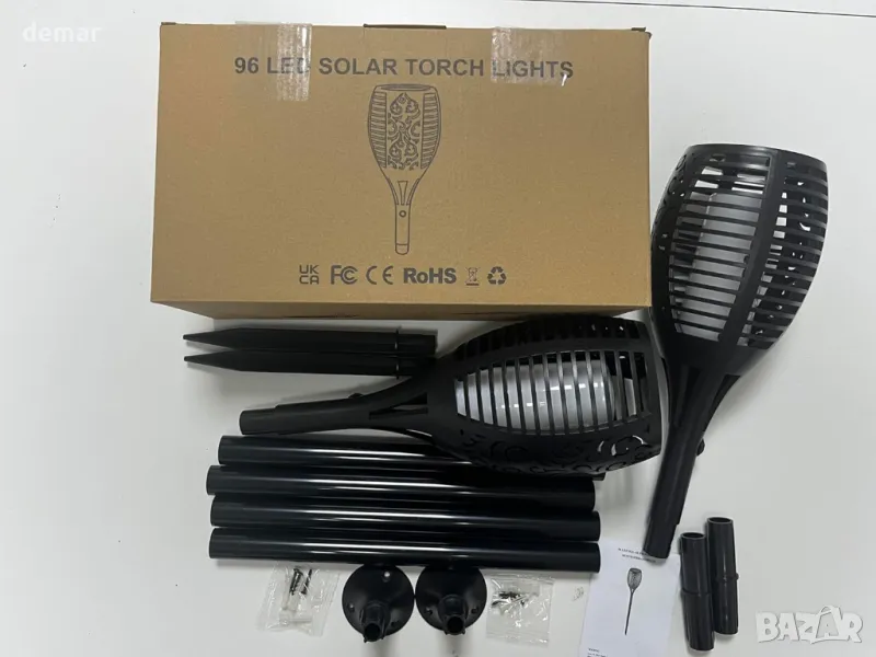 Соларни фенери на открито, 109 см 96 LED трептящи танцуващи пламъци, 2 броя
