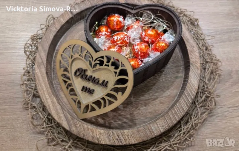 Дървена кутия сърце за бонбони/бижута → Обява 49027067